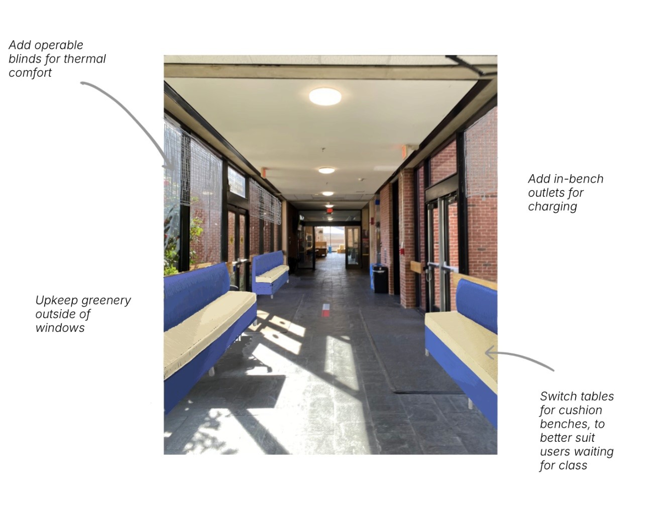 The question: Do the informal spaces where students spend time between classes actually support their ability to focus, decompress, and feel comfortable — and if not, why?